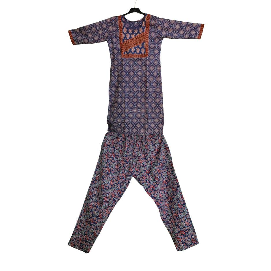 The accompanying cotton salwar showcases a complementary pattern with a relaxed fit, ensuring both style and freedom of movement. Made from 100% breathable cotton, this ensemble is ideal for daily wear, casual outings, or festive occasions where comfort and ethnic flair go hand in hand.